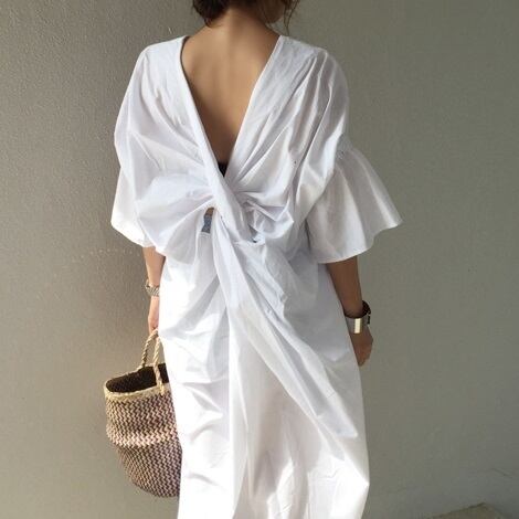 バックスタイルがとてもかわいいバックギャザーのワンピースです☆