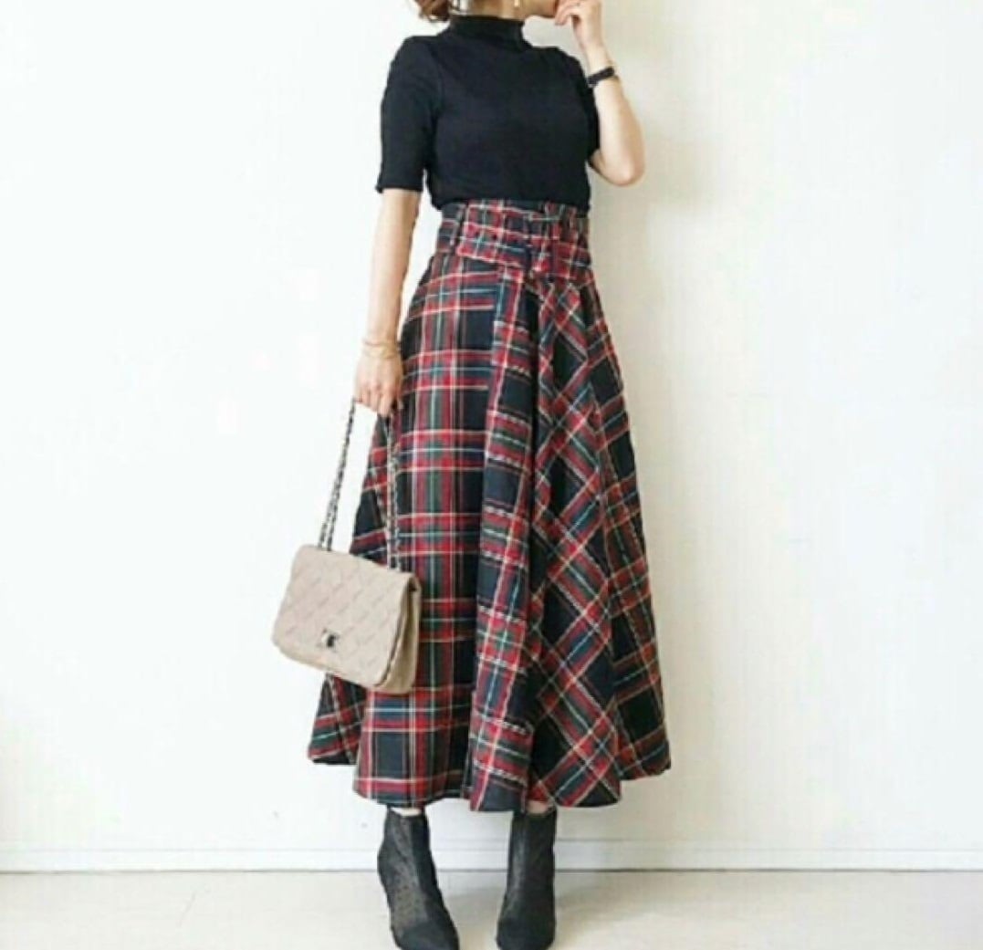 高級感のあるハイウエストチェックスカートで