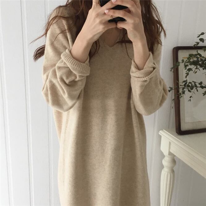 ゆったり着れる♡ルーズ袖 柔らかニット セーターワンピース 3色展開♪
