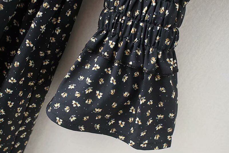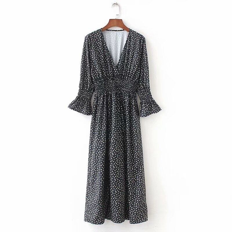 小花柄 Vネックロングワンピ マキシ丈 ハイウエスト ZARA好きに♪