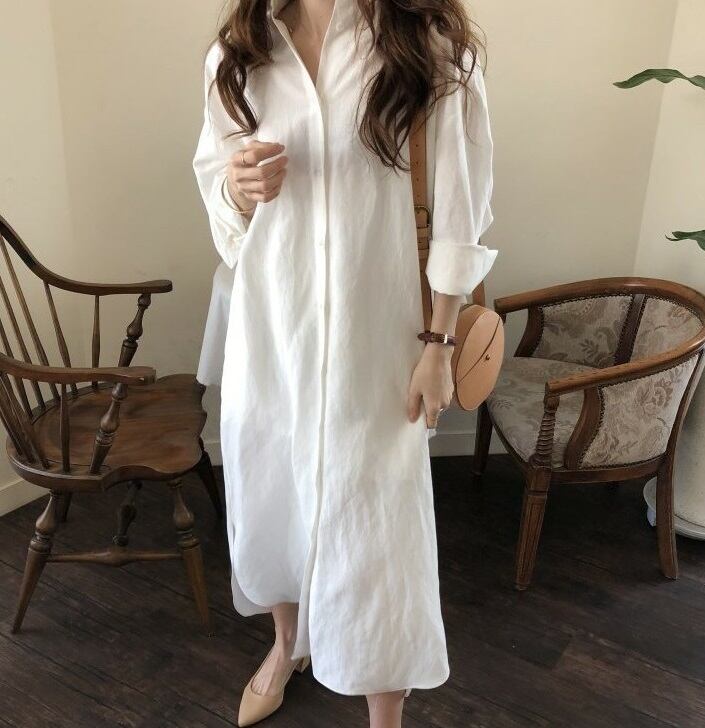 ゆったりラクチン ロングシャツワンピース マキシ丈