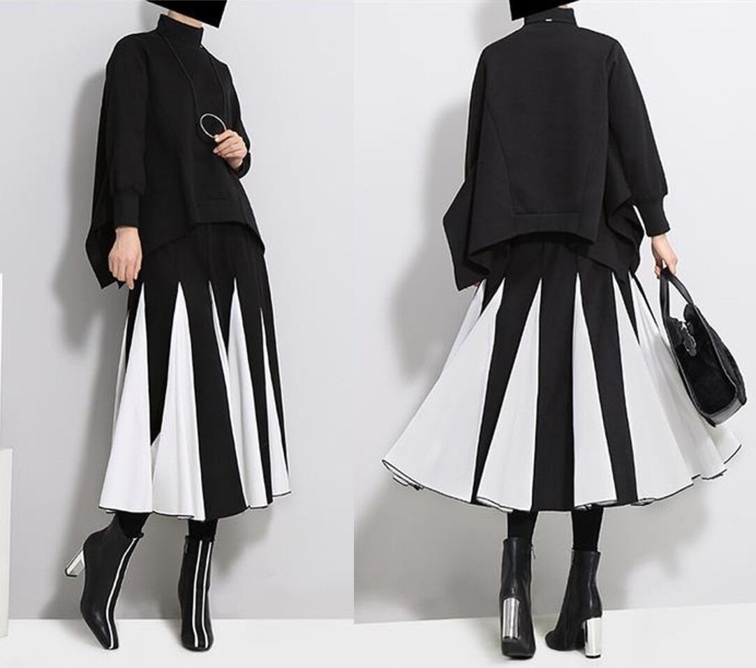 厚めの生地が暖かな印象のAライン切り替え ロングスカートです♪