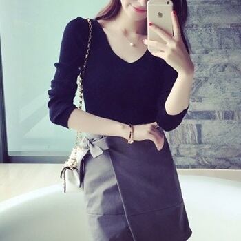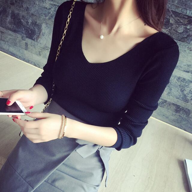 シンプルで飽きのこない、流行り廃りのないデザインですが、胸元のカットが斬新で他の人と差がつきます^ ^