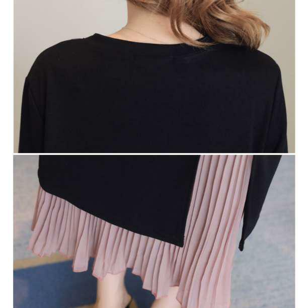 中のプリーツスカートが一体となっているので1枚でレイヤードコーデ風として着用頂けます。