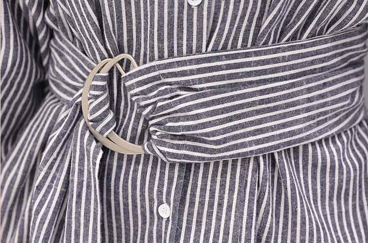 ストライプ柄 ロングテール シャツ リボン ブラウスシャツ