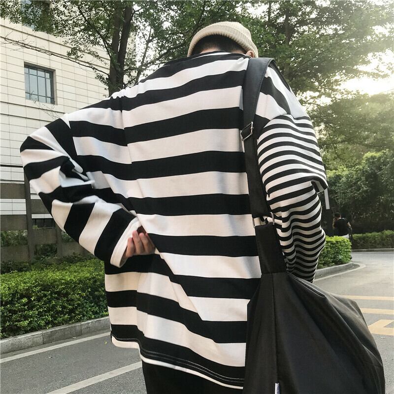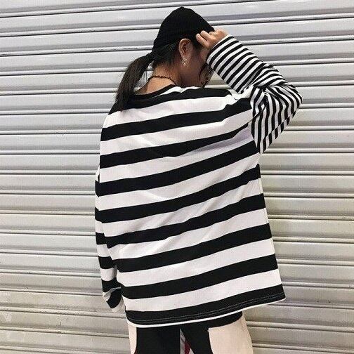 ボーダー プルオーバー オーバーサイズ ビッグシルエット 韓国 アシメ ロンT