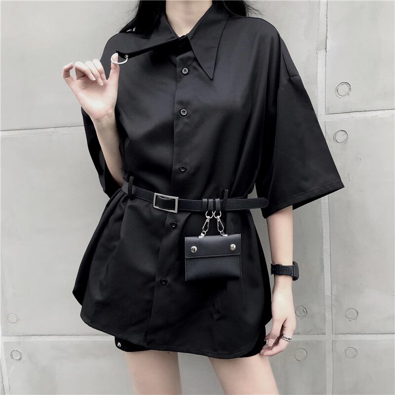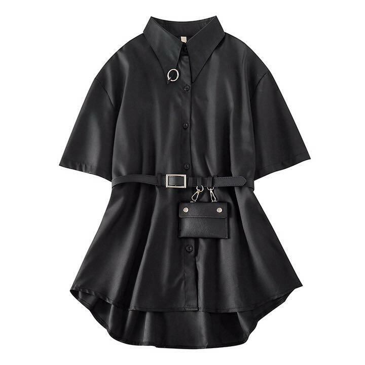 エレガント モード系 無地ブラック シャツ