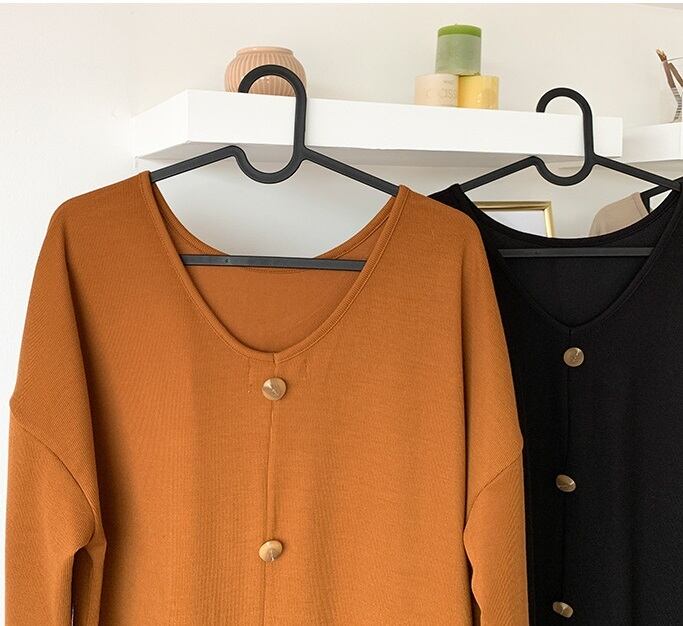 レディース ニットソーワンピース バックボタン スリット ワンピース