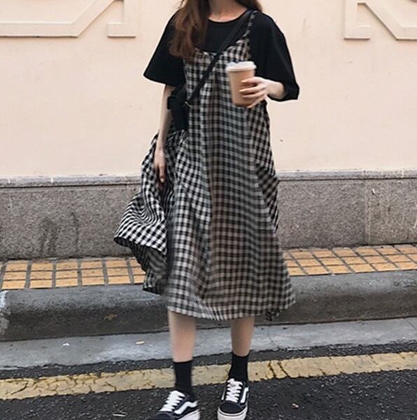 ギンガムチェック バックコンシャス サロペ ジャンスカ ワンピース