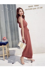 ノースリーブのトップス部分はVネックで小顔効果もあり胸下のギャザーは細見え効果抜群です♪