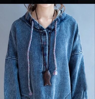 ゆったり可愛いデニム製のパーカーワンピースです。