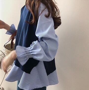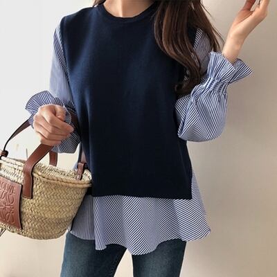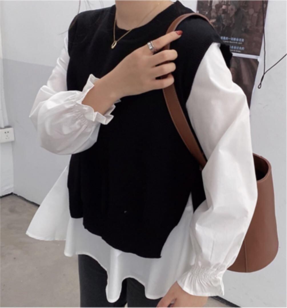 ニット ベスト ブラウス レイヤード シャツ 2点セット