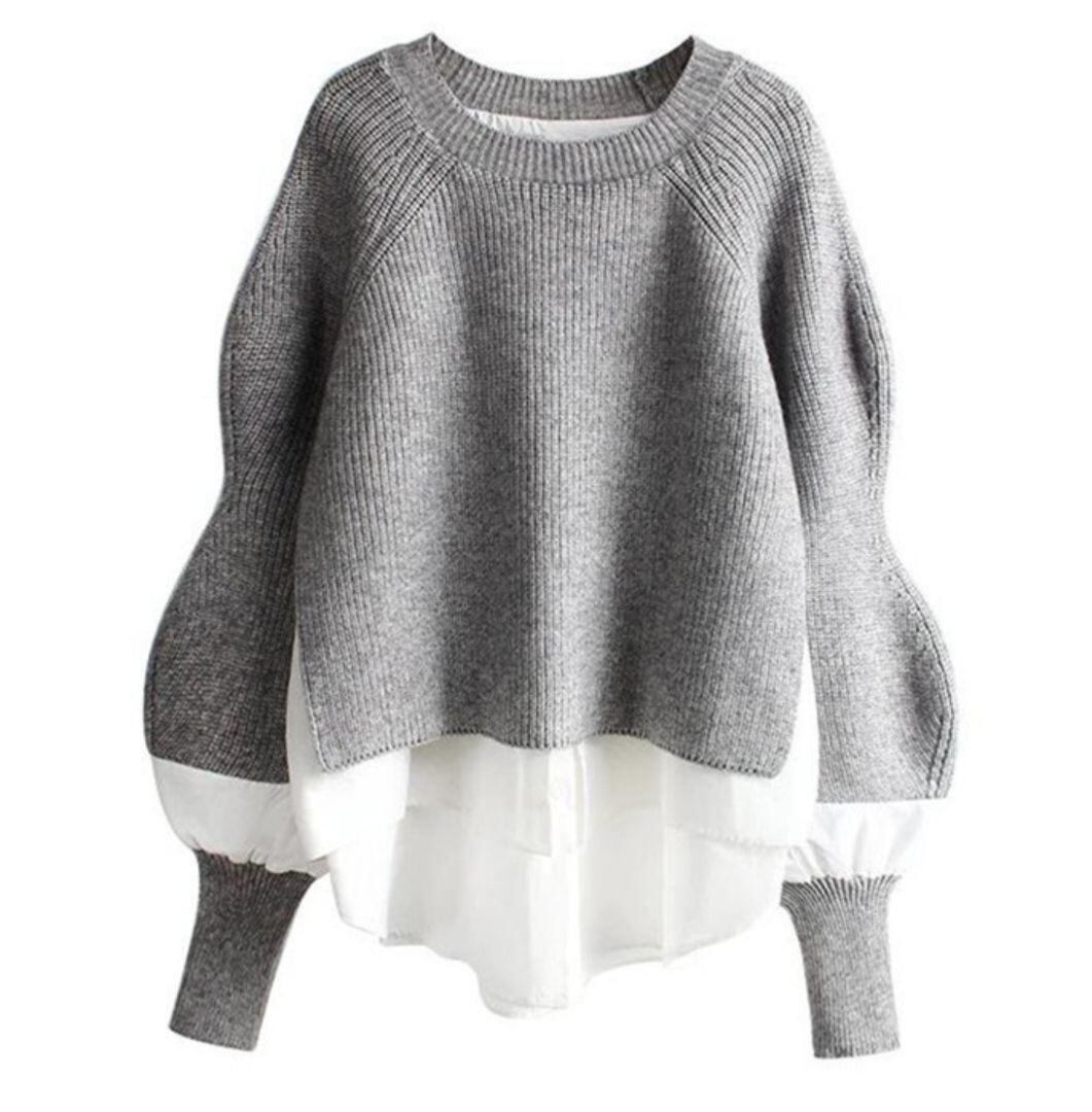 レイヤード ニット シャツ レディース セーター トップス 灰色 グレー 韓国