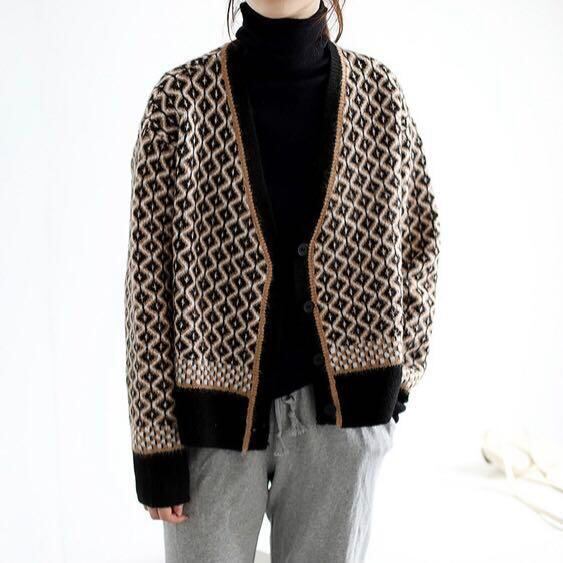 レトロ感があり、おしゃれな総柄が特徴の レディース服 ニット カーディガン です!