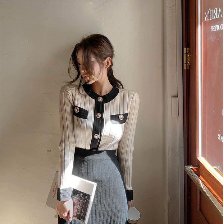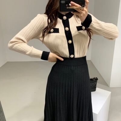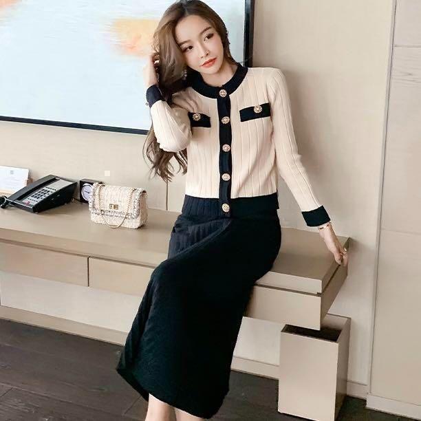 ニット カーディガン ロングスカート セット 韓国コーデ