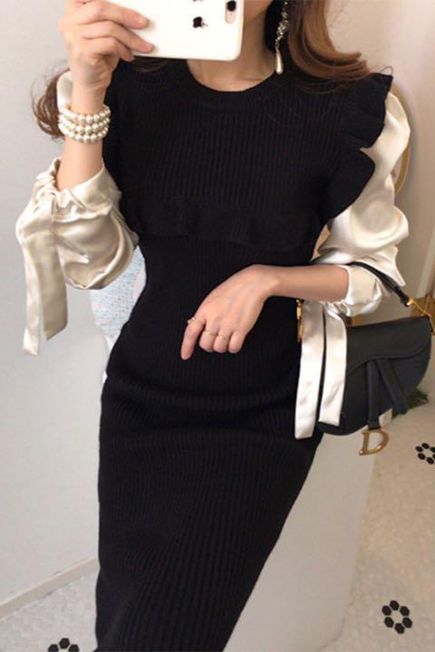 エレガント ニット ドッキングワンピース サテン 春服 卒業式 卒園式