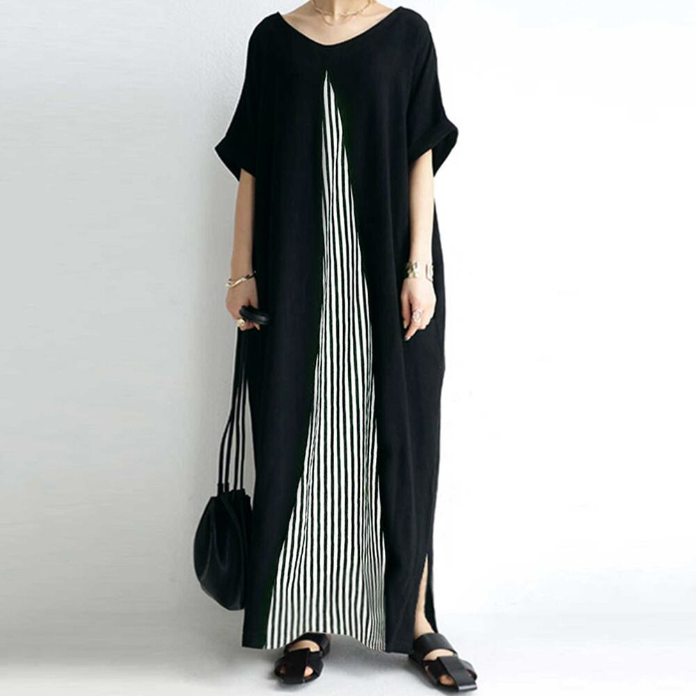 黒がベースでモード系にも人気、カジュアル派にもキチン派にも愛される人気のマキシ丈 ロングワンピース。