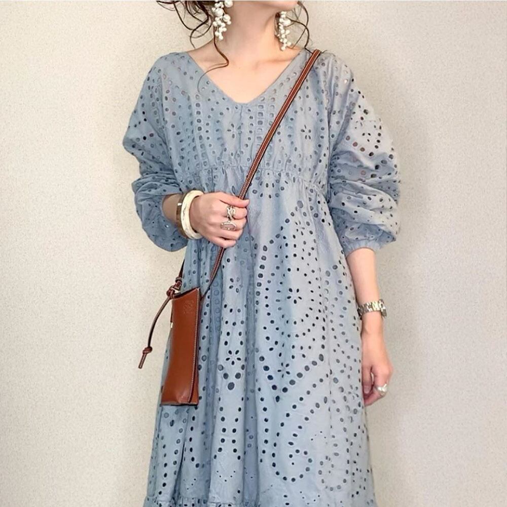 これからの時期にぴったりな、水色の爽やかなレースのワンピースです。