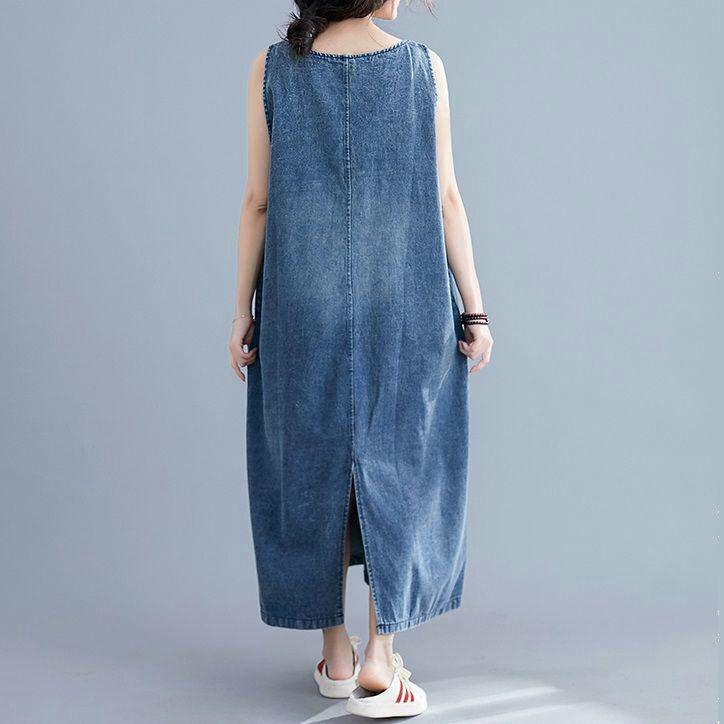 ジャンパースカート プルオーバー デニム ワンピース V字 サロペット