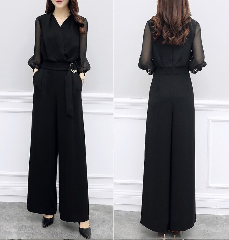 レディース オールインワン カシュクール 袖シースルー ジャンプスーツ 春 韓国
